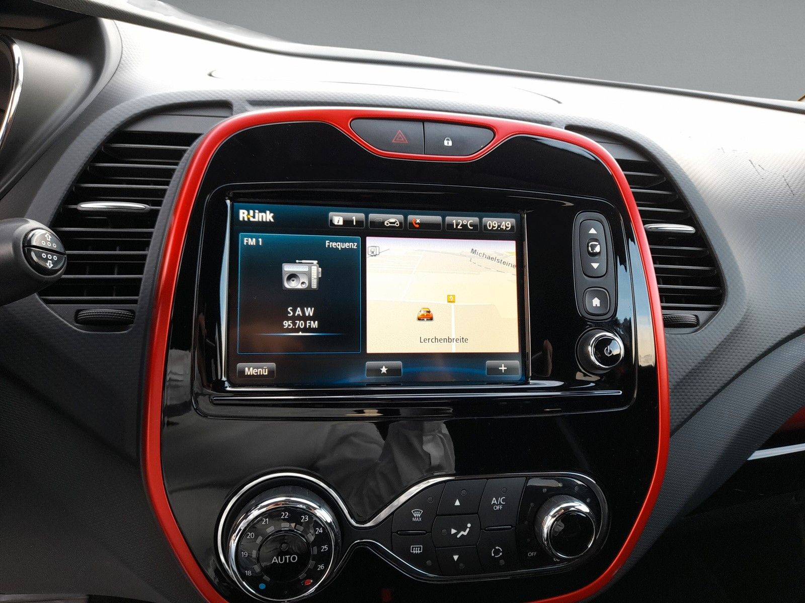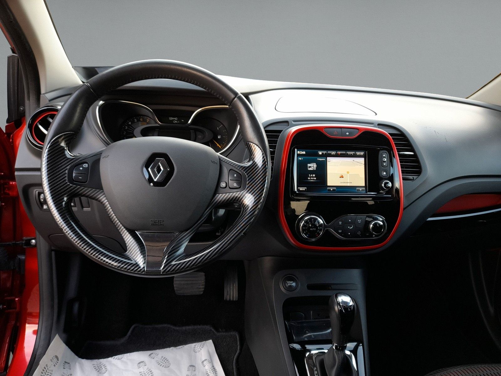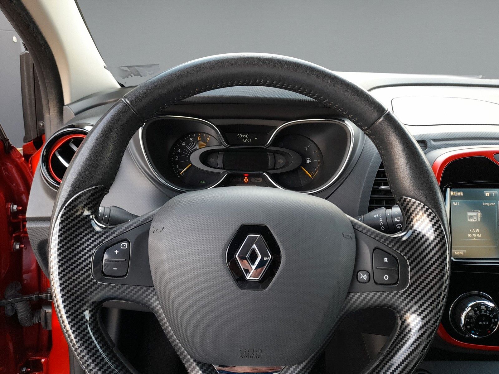 Airbag Beifahrerseite abschaltbar, Airbag Fahrer-/Beifahrerseite, Anti-Submarining-Airbag im Fond, Antischlupfregelung (ASR), Außenspiegel asphärisch, links, Außenspiegel elektr. verstell- und heizbar, Außentemperaturanzeige, Bordcomputer, Bremsassistent, City-Paket Plus, Dach, Außenspiegel und A-Säule Kontrastfarbe, Eco Mode (Fahrmodusschalter), Elektr. Bremskraftverteilung, Energierückgewinnung (Energy Smart Management), Fahrassistenz-System: Berganfahr-Assistent (HSA), Fensterheber elektrisch hinten, Gepäckraumabdeckung / Rollo, Geschwindigkeits-Begrenzeranlage, Gurtstraffer, Handschuhfach mit LED-Beleuchtung, Heckleuchten LED, Heckscheibe heizbar, Heckzierleiste Chrom, Isofix-Aufnahmen für Kindersitz, Isofix-Aufnahmen für Kindersitz an Beifahrersitz, Karosserie: 5-türig, Kopfstützen verstellbar, Lenksäule (Lenkrad) höhenverstellbar, Lenksäule (Lenkrad) längsverstellbar, Leseleuchte vorn, Look-Paket Chrom (außen), Look-Paket rot (innen), Motor 1,2 Ltr. - 88 kW TCE Energy, Paketkombination: R-Link & Klima-Paket, Radstand 2606 mm, Reifen 205/55 R17 ..H, Reifendruck-Kontrollsystem, Rücksitzbank geteilt/klappbar (1/3-2/3), Rücksitzbank verschiebbar, Schadstoffarm nach Abgasnorm Euro 6, Schaltpunktanzeige, Scheibenwischer mit Intervallschaltung, Scheinwerfer mit statischem Kurvenlicht, Seitenairbag vorn, Seitenschutzleisten mit Chromeinlage, Sicherheitsgurte vorn höhenverstellbar, Sitz vorn links höhenverstellbar, Sitzbezug / Polsterung: Kunstleder / Stoff, Sitzheizung vorn, Start/Stop-Anlage, Style-Paket, Türgriffe außen Wagenfarbe, Untersteuerungskontrolle (USC)